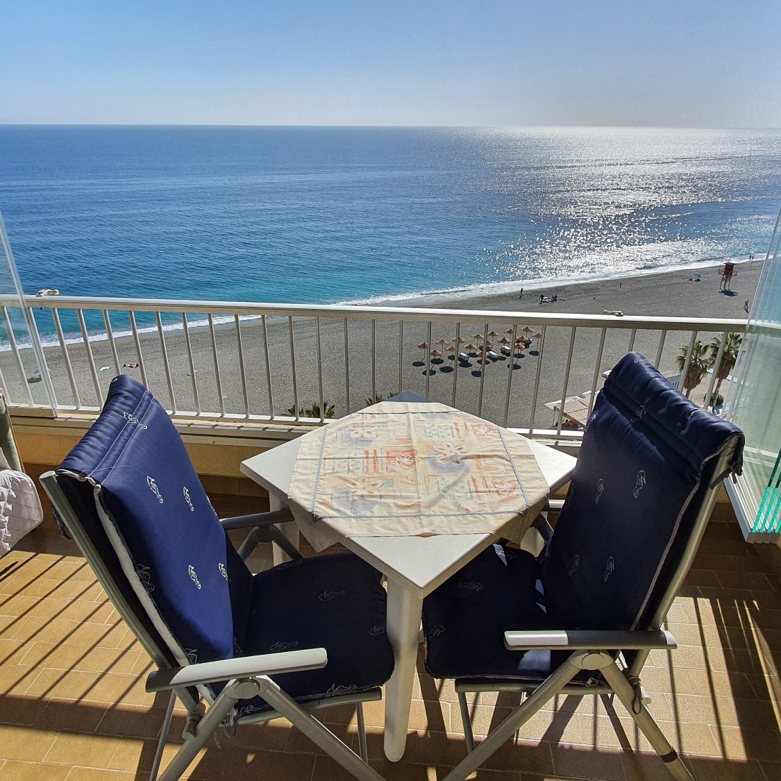 Ferienwohnung Elomar in Almuñécar, am Playa Velilla, im 10. Stock, mit traumhaften Meerblick, für 2 Personen, 1 Schlafzimmer, Wohnzimmer, Küche, Bad mit Dusche, WC und Waschmaschine, SAT-TV, A/C, WiFi 5G Internet. In den Sommermonaten April bis September, steht eine Garage nur 5 Minuten entfernt, zur Verfügung.
