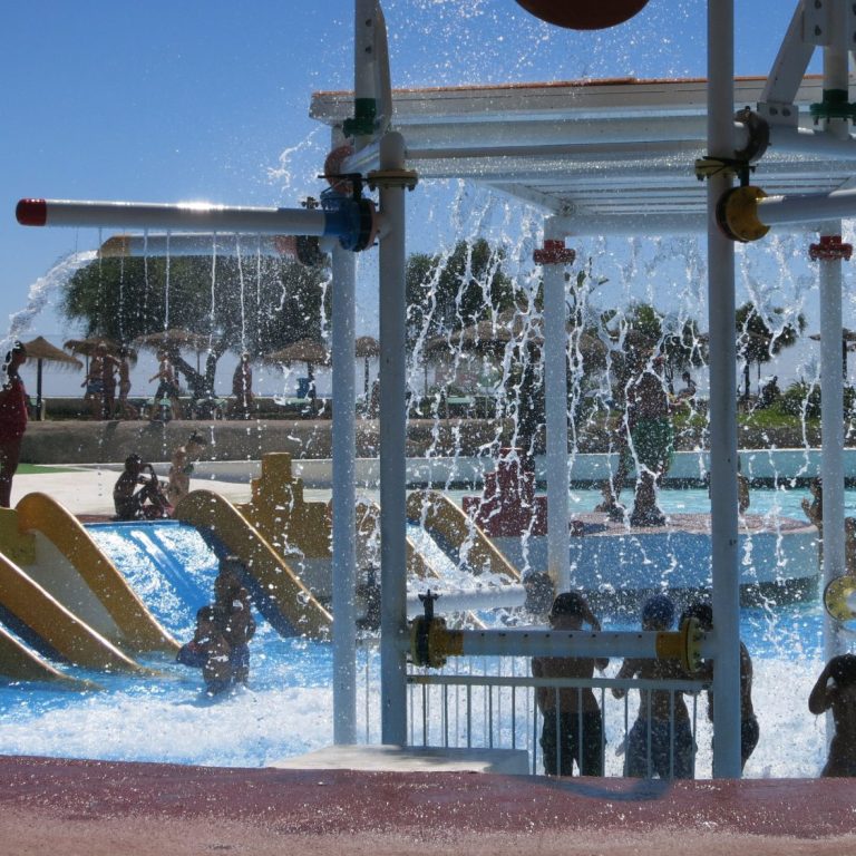 Der mit Salzwasser betriebene Wasserpark ist von Mitte Juni bis mitte September in Betrieb.